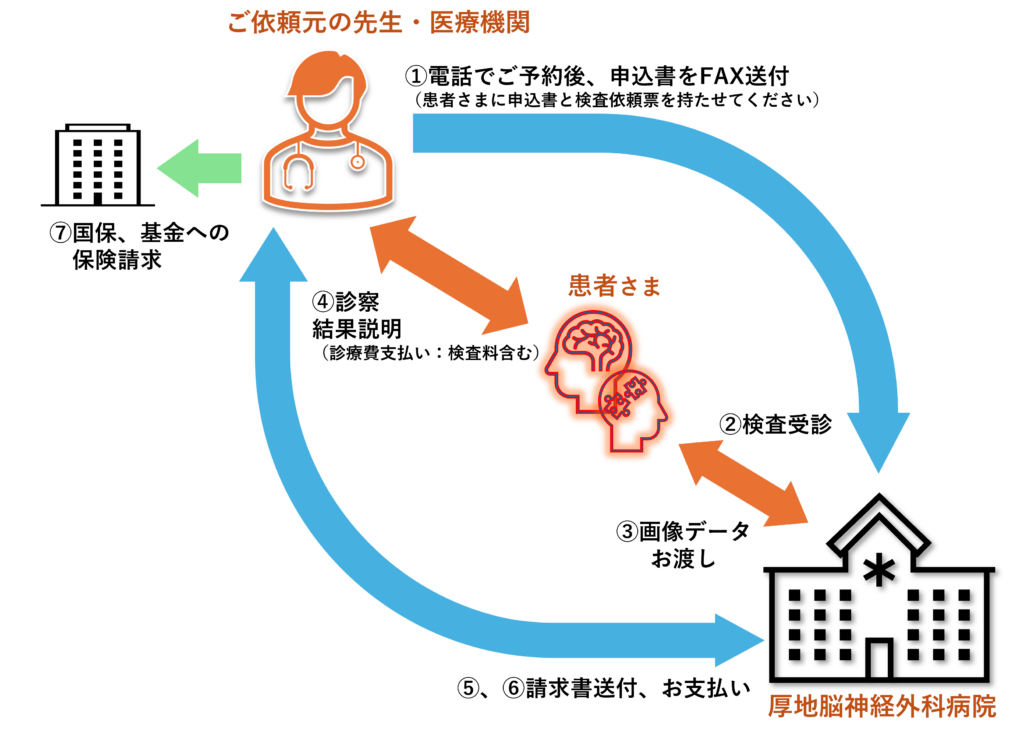 検査日程が決定しましたら共同利用申込書をご記入の上、厚地脳神経外科病院検査部宛てにFAX(099-226-1553)をお願い致します